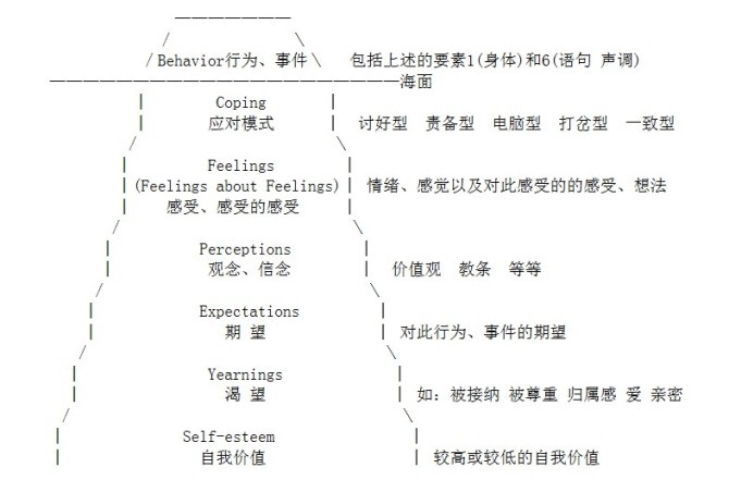以下是妈妈初画的冰山(请大家对照“冰山”图对应相应的层面)